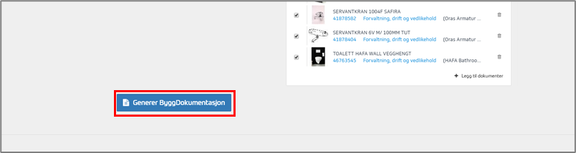 Når alle fanene er gått igjennom, kan du generere en ByggDokumentasjon.