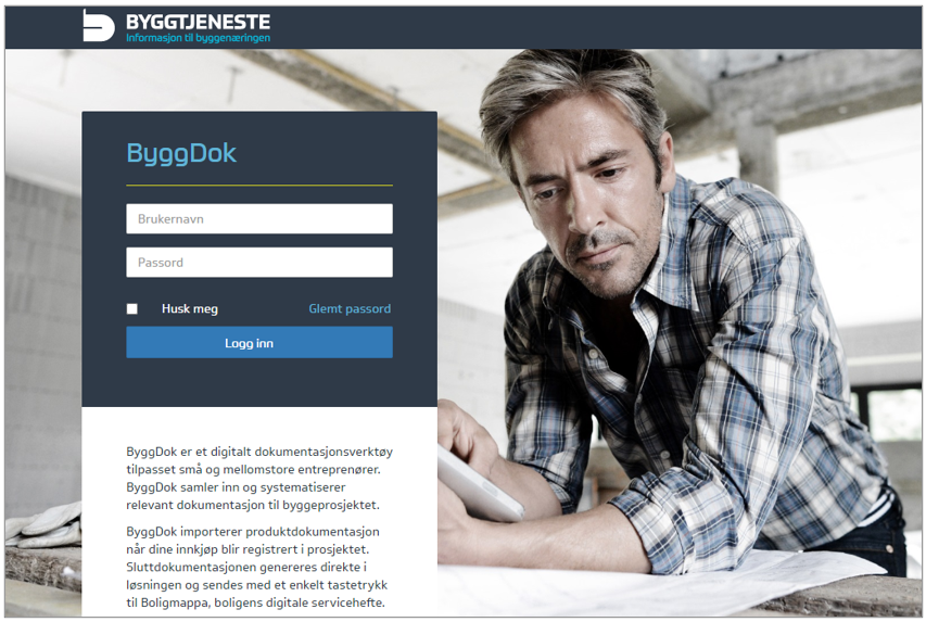 Skriv inn www.byggdok.no i nettleseren og fyll ut brukernavn og passord.