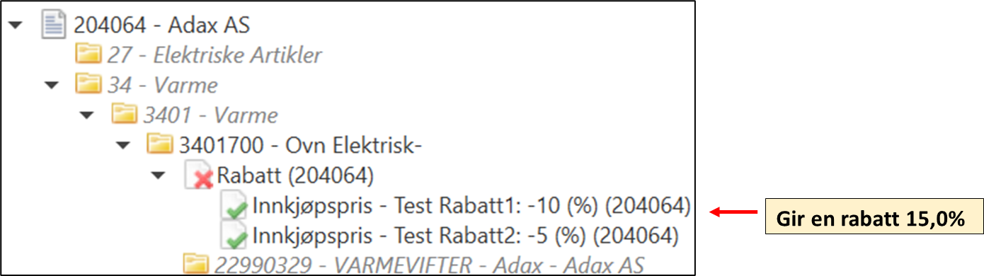 Det er viktig å merke seg at ved flere rabattelementer under samme rabattbetingelse summeres rabattene avhengig av beregningsregel.
