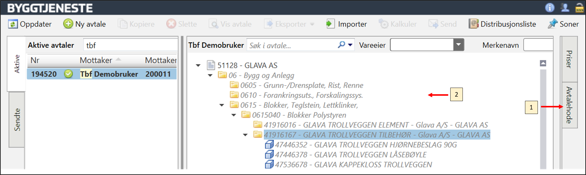 En avtale inneholder leverandørens varestruktur i NOBB, slik at man kan klikke seg gjennom strukturen og se rabattbetingelsene, helt ned til modul- og til varenivå.