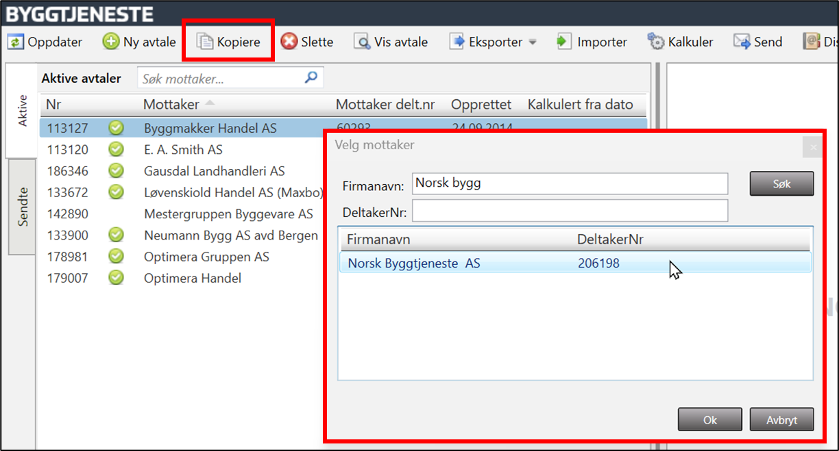 Marker avtalen som skal kopieres og trykk på knappen «Kopiere».