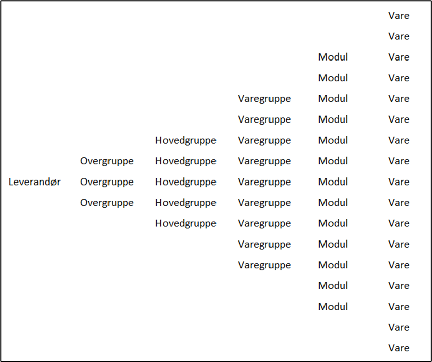 Figuren ovenfor viser hvordan varer struktureres i NOBB for en leverandør .
