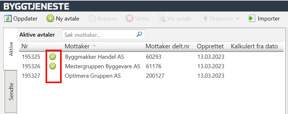 I oversikten som viser aktive avtaler vises det om avtalen er riktig registrert (entydige). Med dette menes det at avtalen har korrekt utfylt og ikke overlappende innhold på betingelser (rabattbetingelser), dersom det finnes flere rabattbetingelser koblet til samme varegrupper/varer.