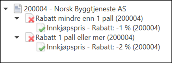 Rediger rabattbetingelsene slik at rabattbetingelsene blir korrekte . Under vises nivåer der det finnes flere betingelser.