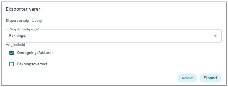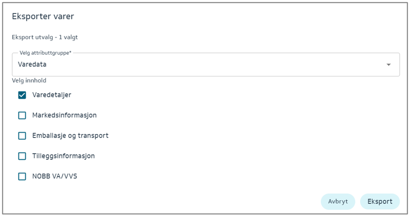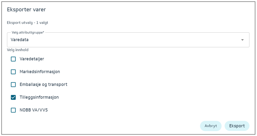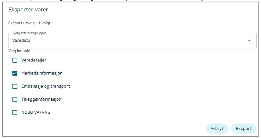 Denne eksporten vil gi deg muligheten til å fylle inn - Varedetaljer.