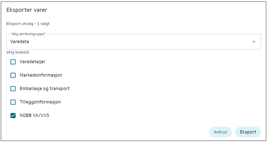 Denne eksporten vil gi deg muligheten til å fylle inn – NOBB VA/VVS informasjon: