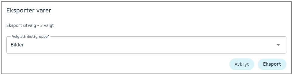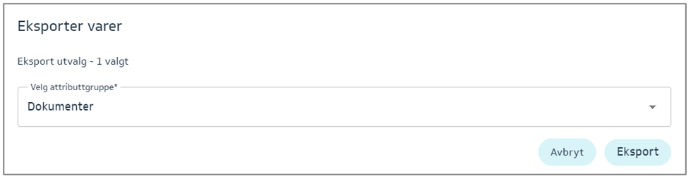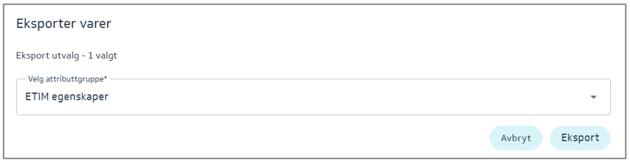 Denne eksporten vil gi deg muligheten til å fylle inn – ETIM egenskaper som vil variere etter hvilken vare/varegruppe du har markert: