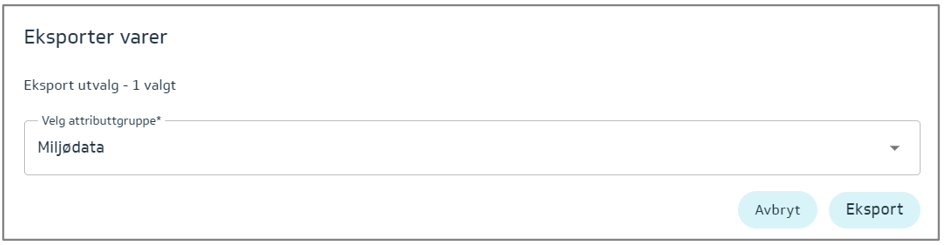 Denne eksporten vil gi deg muligheten til å fylle inn – Miljødata: