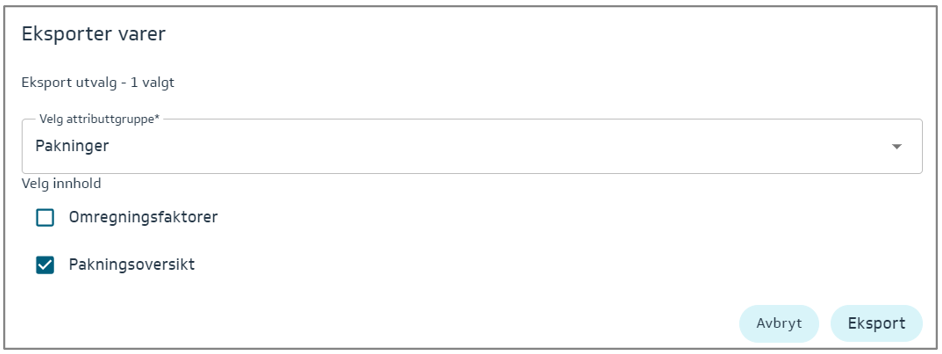 Denne eksporten gir deg en oversikt over alle pakninger: