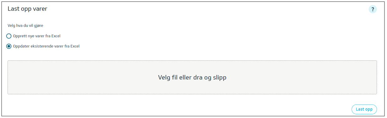 Du kan bruke Last opp varer/Oppdater eksisterende vare for å samle informasjon.