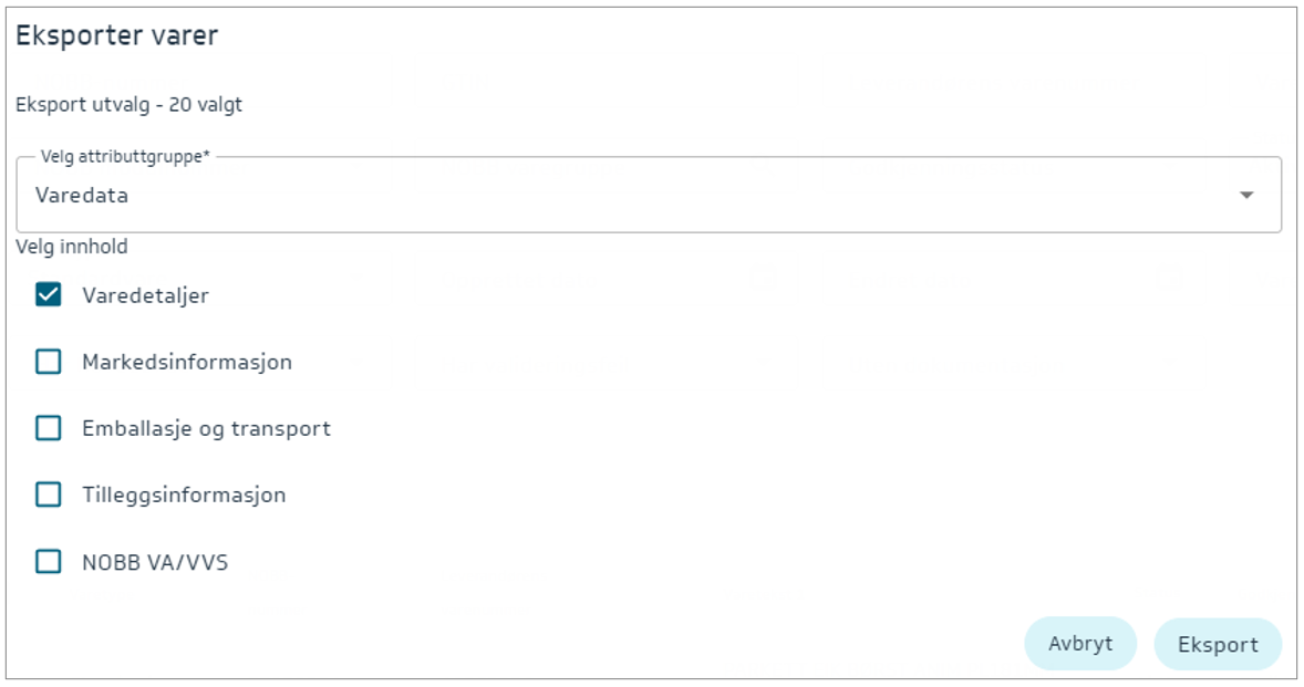 Marker ønsket datafelter og trykk på knappen Eksport.