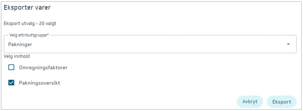 I dette vinduet ser man hvor mange varer er med i eksporten