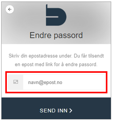 3. Skriv din e-postadresse og trykk «Send inn»: