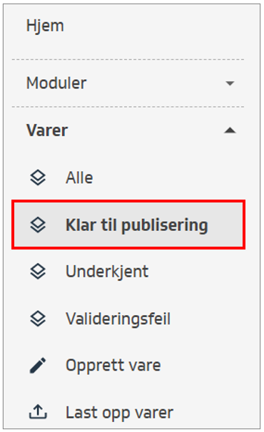Gå til menyen på venstre siden og velg Klar til publisering (under Varer)
