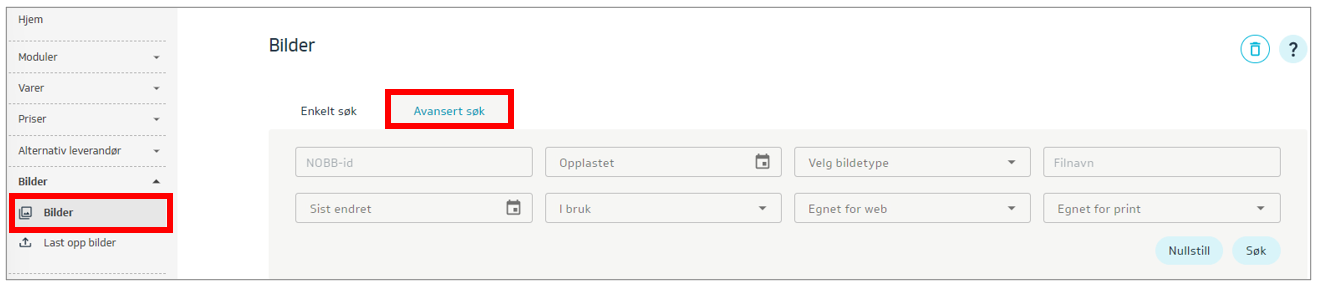 Her kommer oversikt over alle bilder. Trykk på knappen Avansert søk.