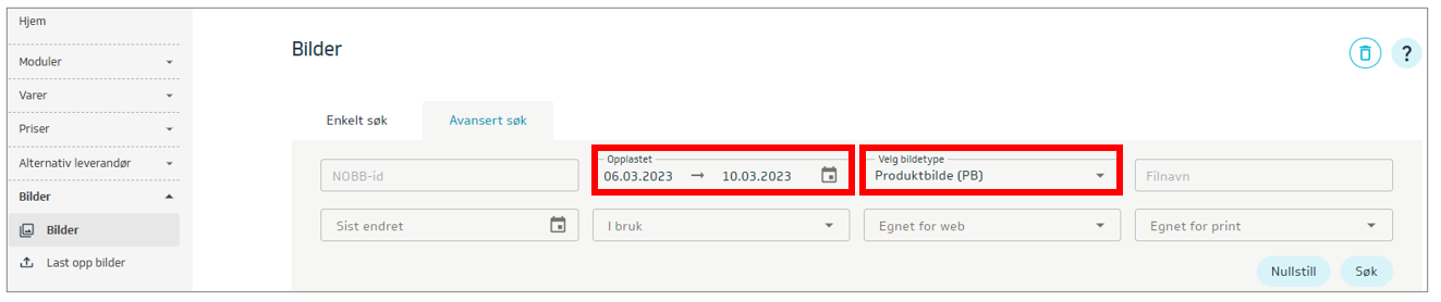 For eksempel: alle produkt bilder lastet opp i en bestemt periode