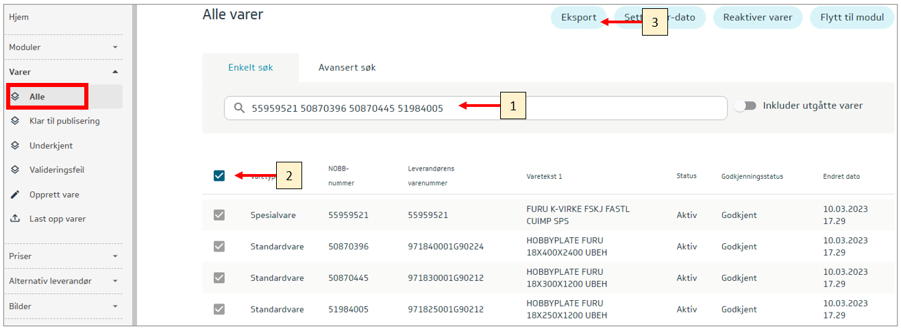 Vi anbefaler å søke frem de varene som “tilhører” den respektive EPDen.