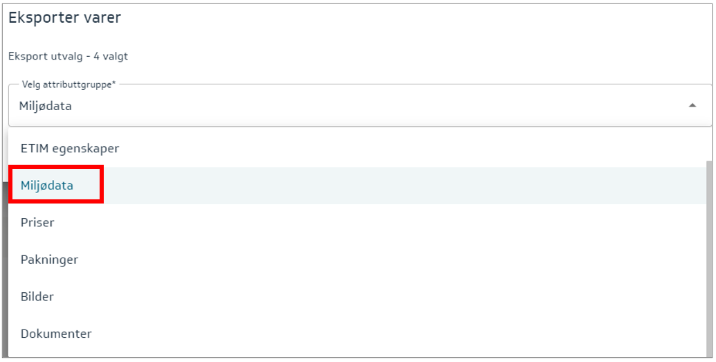 4. Velg Miljødata og trykk på Eksport