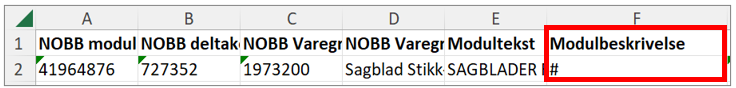 Det er mulig å slette datafelter som ikke er obligatoriske i NOBB Leverandør via Excel fil ved bruk av # (hashtag).