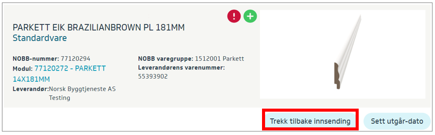 Det er mulig å trekke tilbake innsending. Dvs. hvis du har sendt en vare til godkjenning så ved å trykke på Trekk tilbake innsending vil varen endre status fra Avventer godkjenning til Endret, ikke publisert: