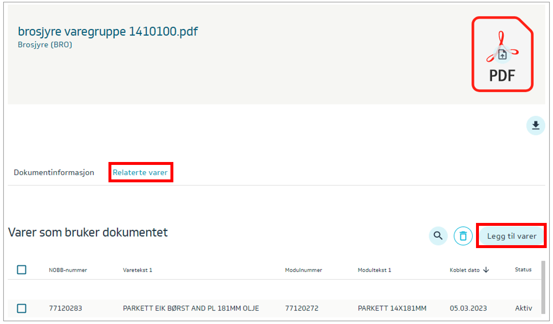 Koble dokumenter til alle varer i en modul