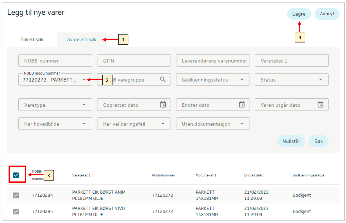 Søk etter NOBB modulnummer (2)
