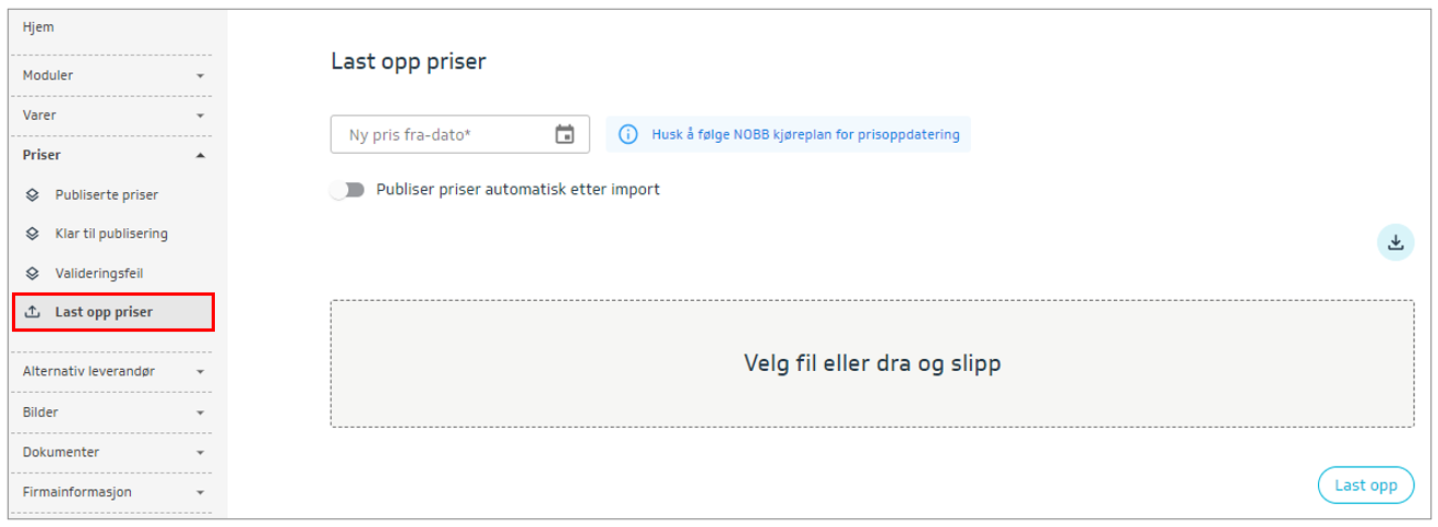 Hvis du har abonnement NOBB Total vil Priser vises i menyen på venstre-siden.