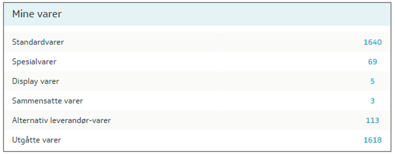 Trykk på antallet for å få oversikt over varene med den aktuelle varetypen eller de utgåtte varene.