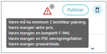 Ved å holde musepekeren over trekanten vises en liste over hva som mangler eller er feil i forhold til NOBB Regelverk.
