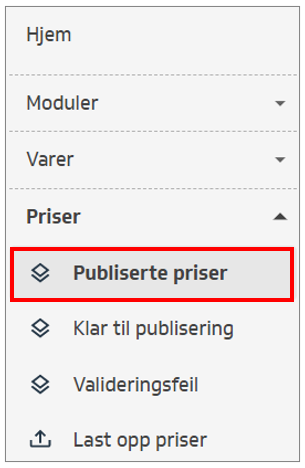Hvis du har abonnement NOBB Total vil Priser vises i menyen på venstre-siden.