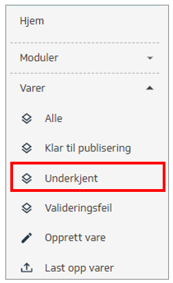 Gå til menyen Varer, velg Underkjent.