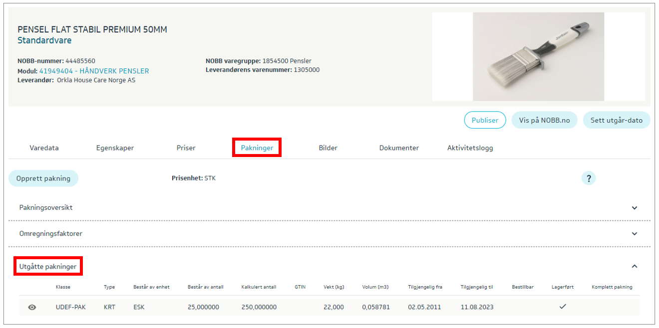 Hvis varen har utgått pakning/er så vises disse her: