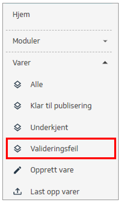 Valideringsfeil (Varer)