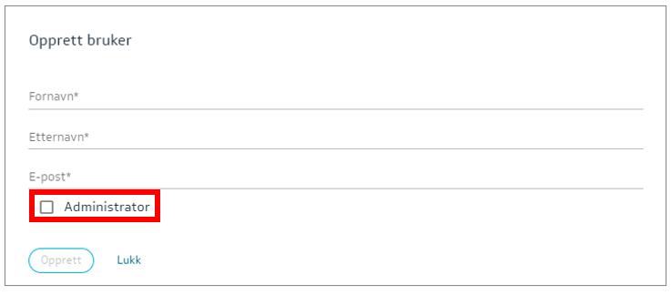 Ved å markere Administrator, får brukeren mulighet å administrere brukere tilknyttet eget firma: