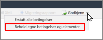 Alle egne betingelser/elementer som du selv har registrer og som er påvirket av migreringen, vil ikke bli oppdatert til ny struktur.
