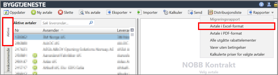 Dersom du har lagt egne betingelser/elementer på den aktive avtalen, kan du under “Rapporter” ta ut en excelfil som viser hvilke betingelser/elementer som du selv har registrert.